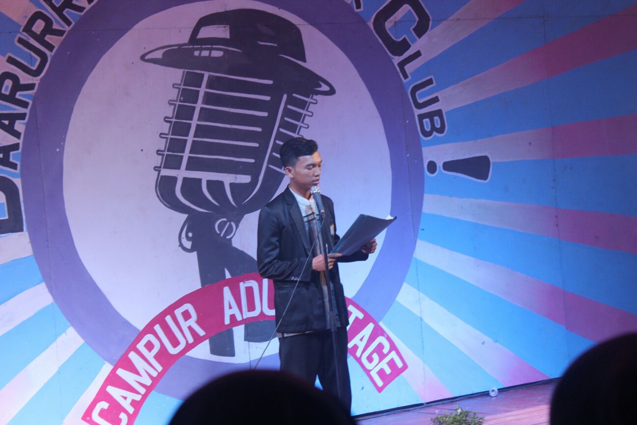 Bapak Sekertaris Pusat tidak bisa hadir pada acara tadi malam. Namun beliau diwakilkan oleh Ust. Rifan Miftahul Arifin “Untuk peserta lawak jadilah pelawak yang baik, dan untuk hadirin jadilah penonton yang baik” Sahutnya sebelum memulai acara.